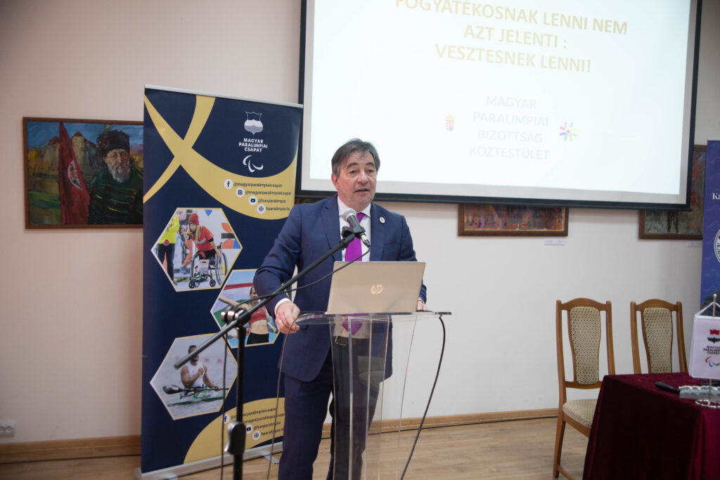 A nap zárásaként Szabó László elnök A paralimpiai mozgalom múltja és jelene – mérföldkövek és trendek címmel tartott előadást az egyetem közössége számára.
